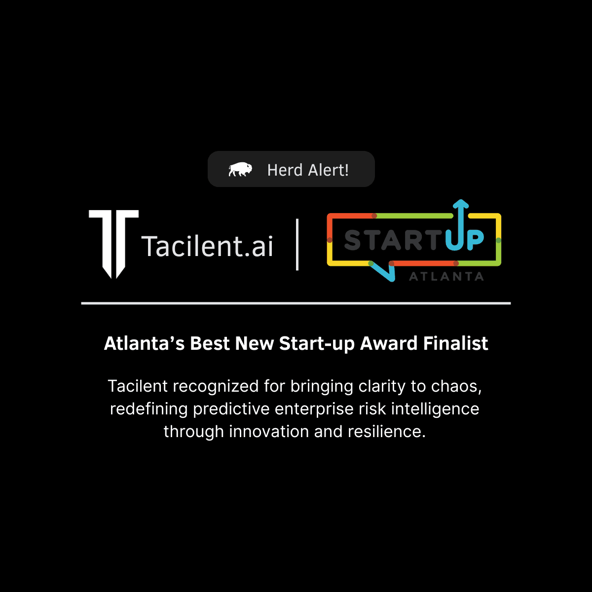 Tacilent.ai has been named a Finalist for the 2025 Atlanta Best New Startup Award. This recognition highlights the impact of Tacilent’s predictive intelligence and resilience strategies, as well as the thriving community we’re building through the Nerd Herd. By transforming how organizations anticipate and act on risk, Tacilent is helping shape the future of AI-driven risk technology. Being recognized by Startup Atlanta reinforces that Atlanta is where innovation in risk intelligence is taking root—and we’re only just getting started.