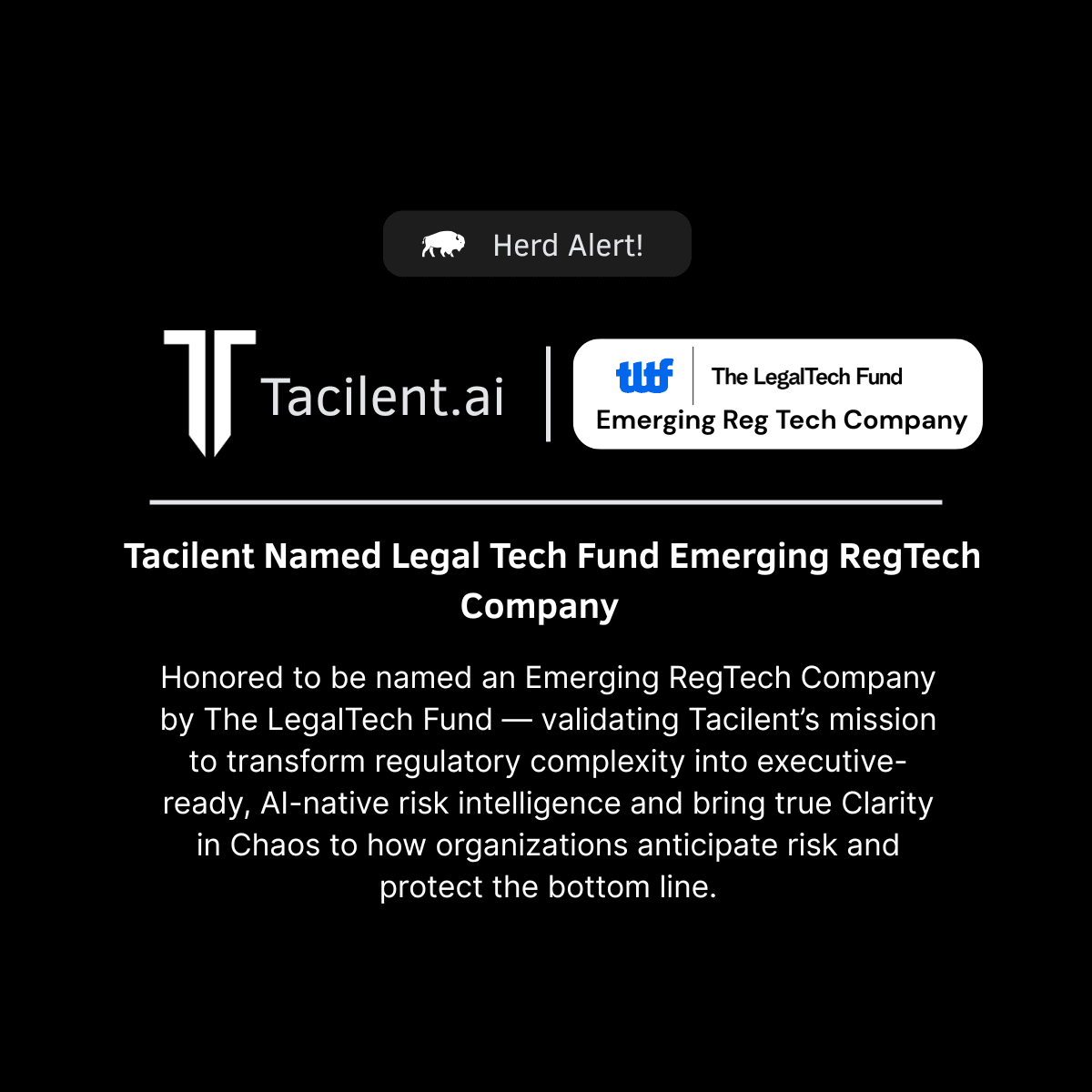 Tacilent.ai is proud to be recognized by The LegalTech Fund as an Emerging RegTech Company, highlighting innovative startups transforming regulatory compliance and risk management.