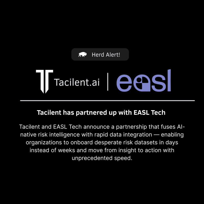 Tacilent and EASL Tech announce a partnership that fuses AI-native risk intelligence with rapid data integration — enabling organizations to onboard disparate risk datasets in days instead of months and move from insight to action with unprecedented speed.