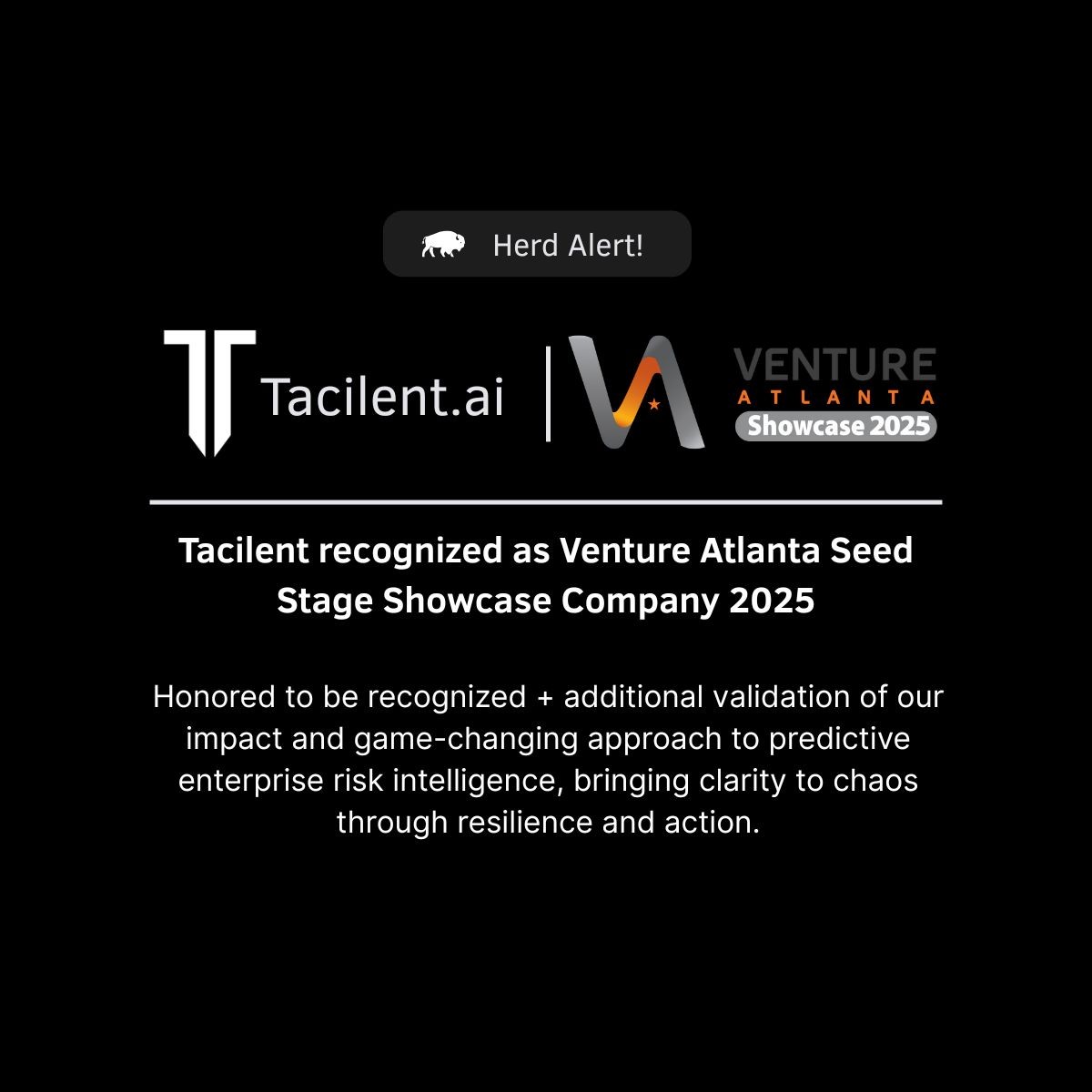 Tacilent.ai has been selected as a 2025 Venture Atlanta Conference Seed-Stage Showcase Company. This October 15–16 at the Woodruff Arts Center, we’ll join the Southeast’s leading innovators to demonstrate how we’re reshaping the future of risk intelligence.